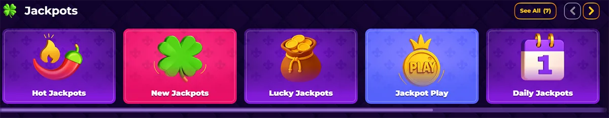 Our jackpot games include both local and networked progressives. Big Time Gaming and Red Tiger contribute several high-performing titles with proven track records for substantial wins.