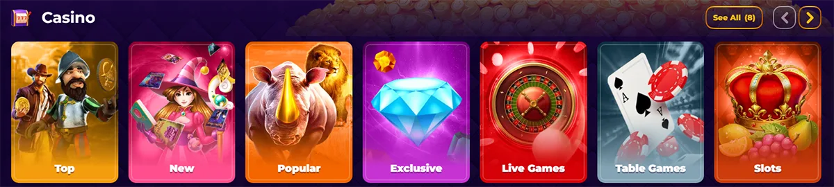 The video slots category includes various volatility levels and RTP ratings. High-volatility titles offer larger potential wins, while medium-volatility games provide more frequent smaller payouts for sustained gameplay sessions.
